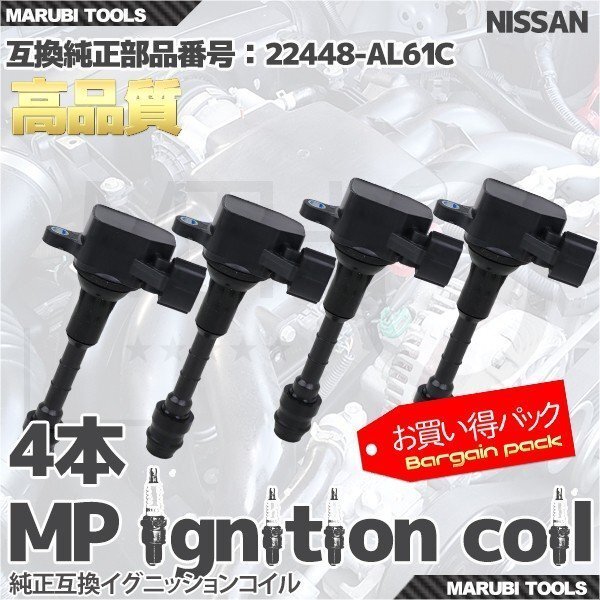 > 【送料無料】イグニッションコイル ニッサン ステージア スカイライン 他 22448-AL61C 等 4本 3Pinタイプ-042