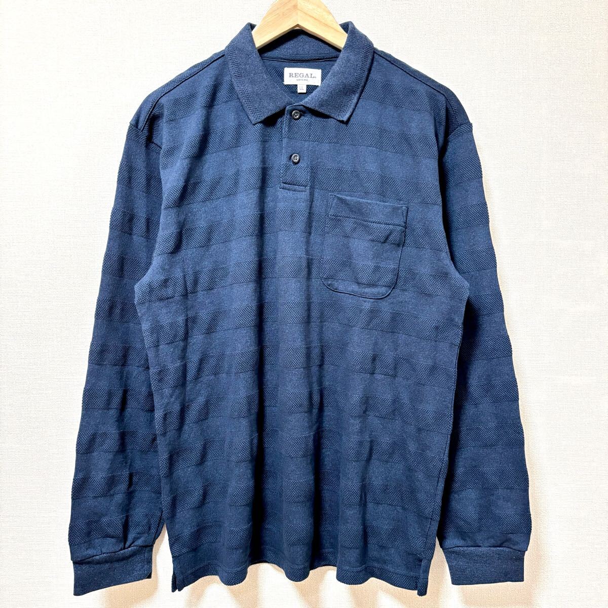 > 美品◎ビッグサイズ◎【REGAL】リーガル スウェット ポロシャツ 紺 ネイビー ボーダー 春 秋 長袖 ゴルフ 行楽 メンズ サイズLL/Y34323SS