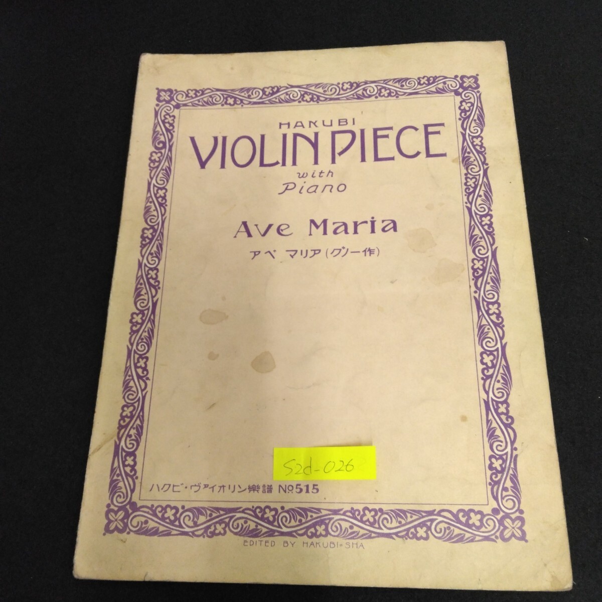 > S2d-026 アヴェ・マリア グノー作 大正13年11月8日発行 ハクビ・ヴァイオリン楽譜No.515 白眉出版社 ピアノ クラシック 音楽