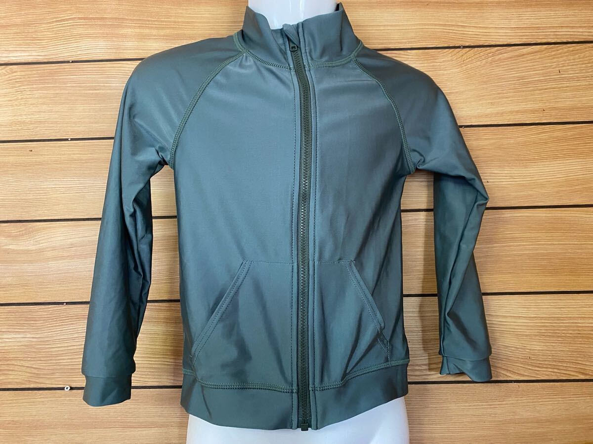 - 美品! 100cm ラッシュガード フルジップ 長袖 色無地 グリーン キッズ
