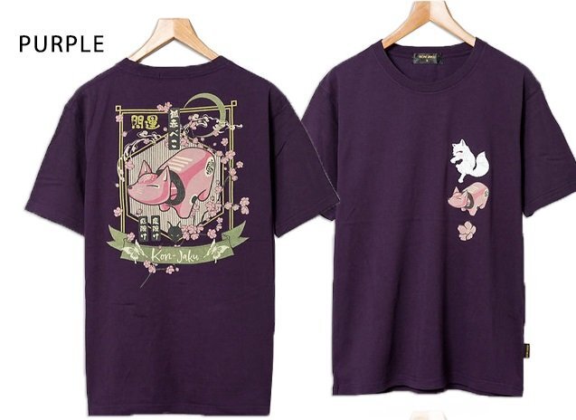 - 狐赤べこ半袖Tシャツ◆今昔 パープル XLサイズ KJ-29248 和柄 和風 狐 きつね キツネ こんじゃく