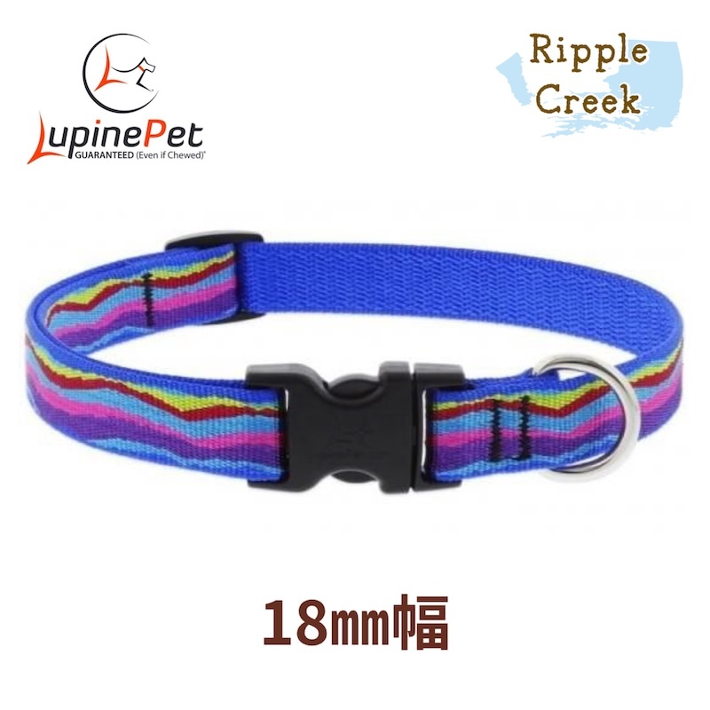 - ワンタッチ首輪・Sサイズ・18mm幅 リップルクリーク柄 23-35cm LUPINEルパイン アメリカ製 軽量 丈夫 小型犬中型犬