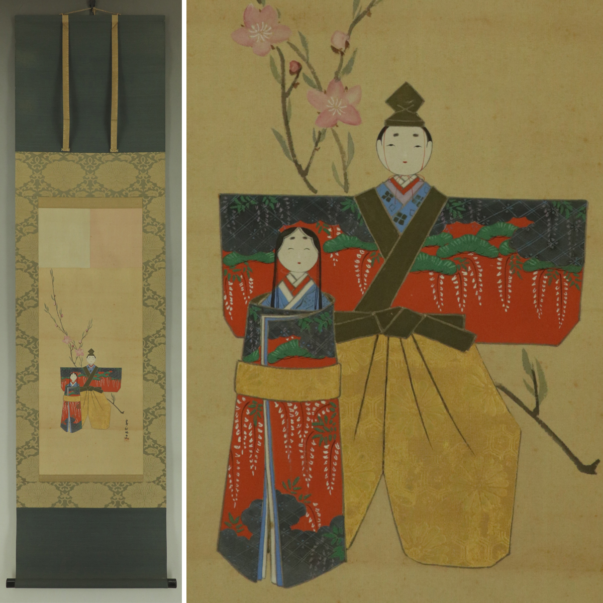 - 【肉筆】古画【立雛】◆絹本◆合箱◆掛軸 s06059