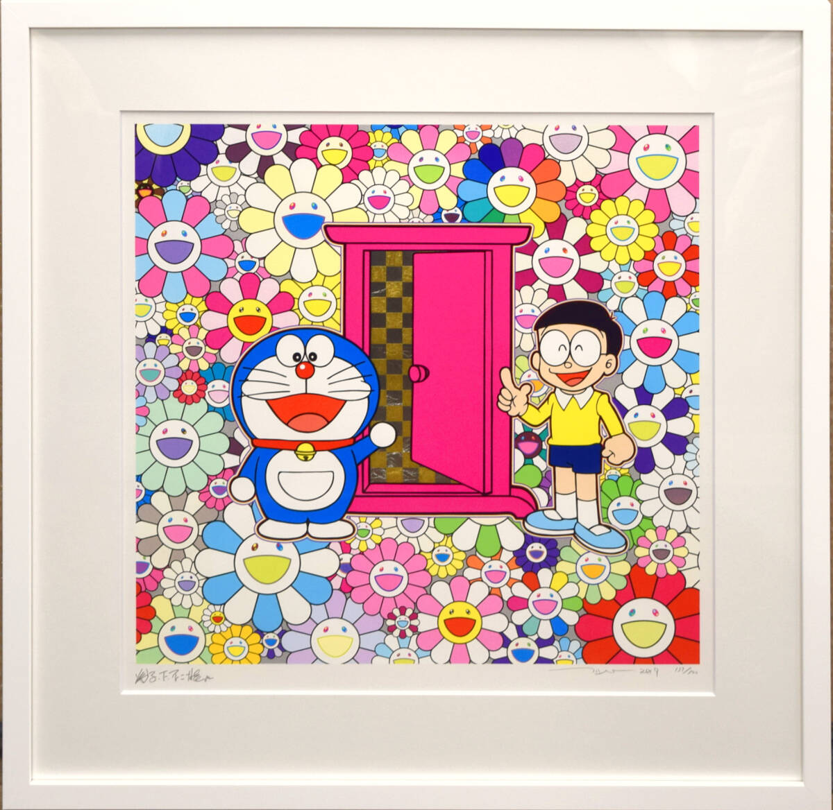 - 【真作保証】村上隆「お花畑の中の「どこでもドア」」/シルクスクリーン/サイン入り/現代アート/人気作家/ドラえもん/カイカイキキ