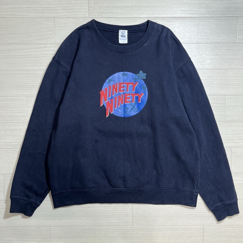 - ●9090/NINETY NINETY/ナインティナインティ/PLANET LOGO CREWNECK SWEATSHIRT/プラネットロゴ クルーネックスウェット/ネイビー/Lサイズ