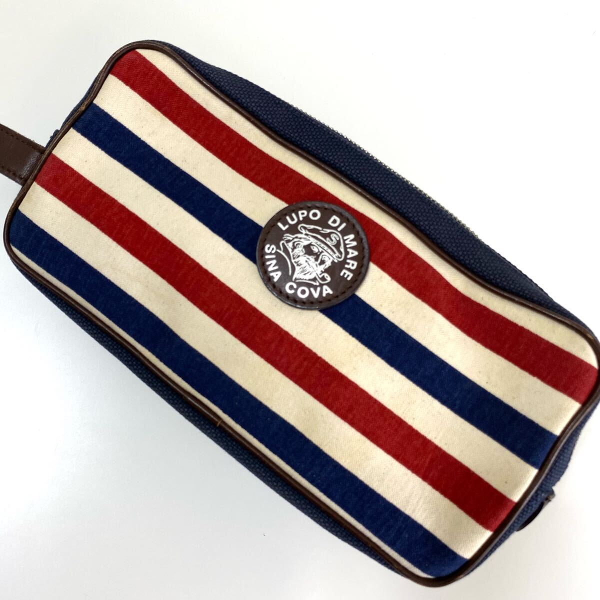 > ★ トリコロールカラー* SINA COVA キャンバス クラッチバッグ ネイビー ◆ ハンドバッグ セカンドバッグ ポーチ シナコバ ◆W5 BRえY4-03