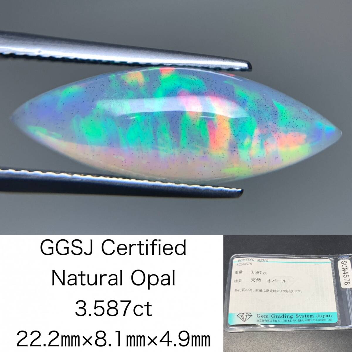 > オパール 天然 3.587ct 宝石ソーティング付き 22.2×8.1×4.9 ルース( 裸石 ) 6175Y