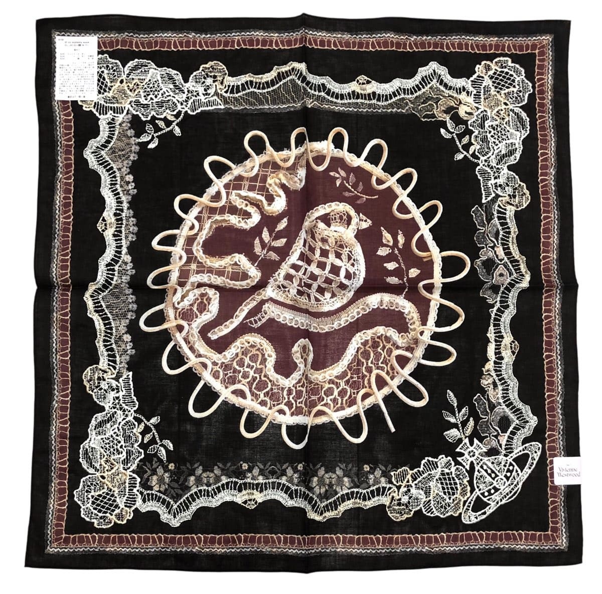 > ヴィヴィアンウエストウッド ハンカチ スカーフ ブラック 刺繍 黒 レディース Vivienne Westwood 大判 【中古】