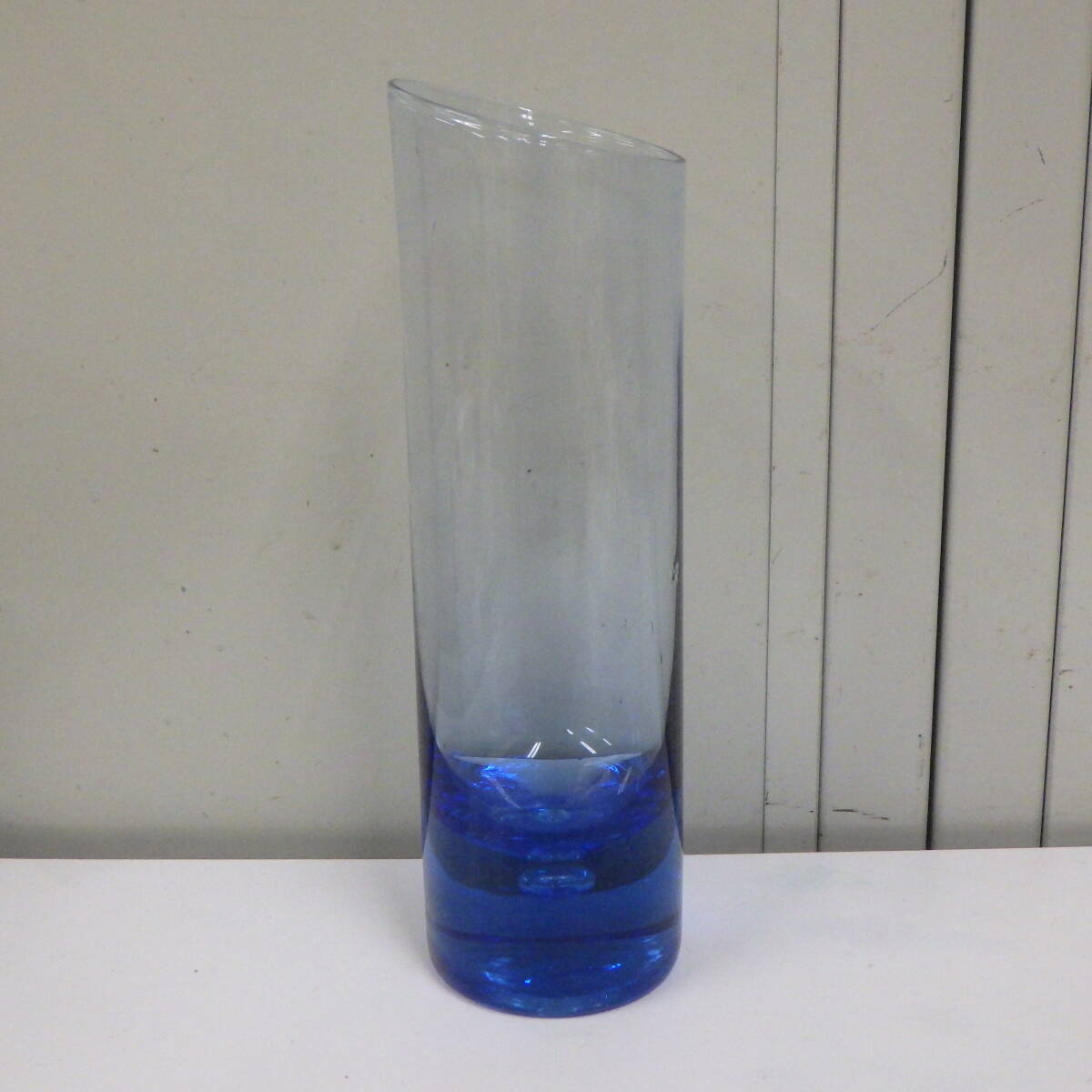 - 青 ガラス 一輪挿し 花瓶 円柱 フラワーベース ブルー
