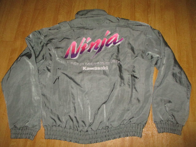 > カワサキ Ninja ニンジャ・GPZ900R サイズLL 全刺繍・グラデーションロゴ ライダース・ジャケット 美中古