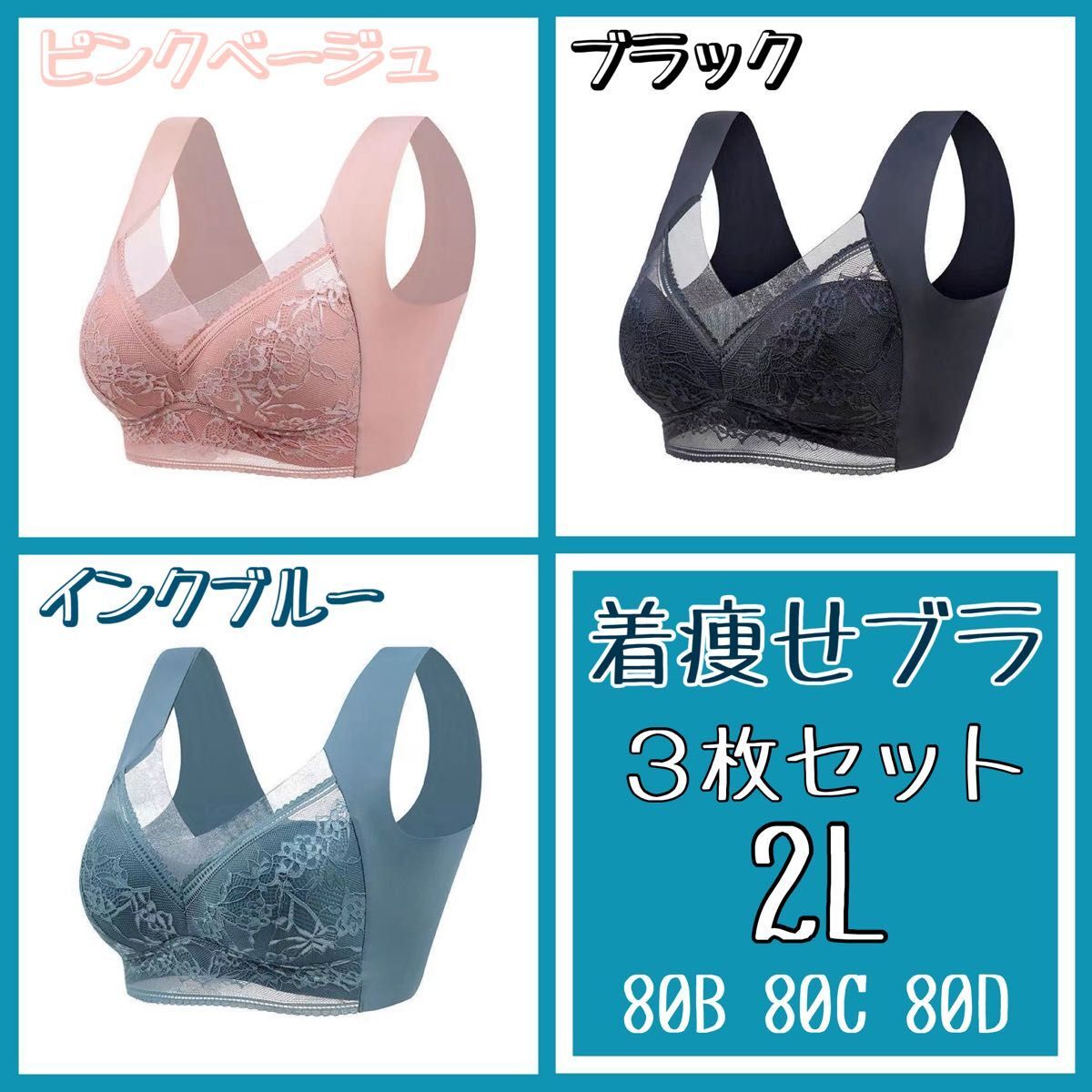 - 胸を小さく見せるブラ シームレス ノンワイヤー 2L ナイトブラ 美胸 人気 ブラジャー レース