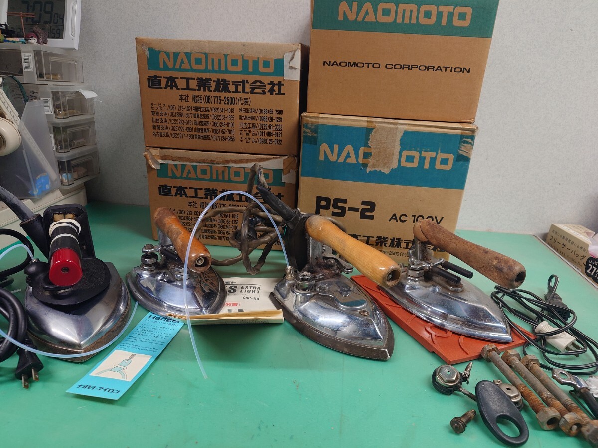 > ● NAOMOTO 直本 レトロ ヴィンテージ ヒートレス アイロン HS-6 78-5/66-6/AS-6L 79-8 他 4点セット 元箱 付 ジャンク品 ディスプレイ③
