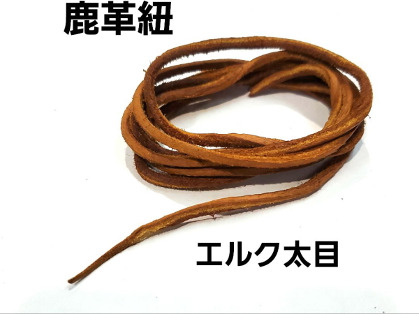 - エルク 鹿革紐 鹿ひも 革 紐 クリーム仕上げちょい太めキャメルrym-111天然130cm以上 スキン クラフト 材料 革 ゴローズ カスタムに