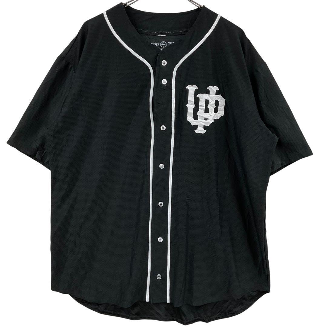 > ユーパーシャツ 野球シャツ 半袖 XL 黒 ロゴ 刺繍 ストリート系【4918】