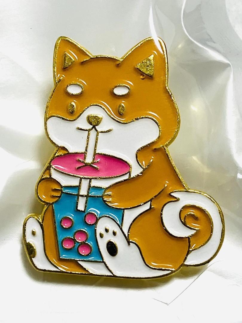 - 新品 送無★☆ピンバッジ かわいいタピオカ 柴犬☆★カワイイ オシャレ 犬 dog いぬ わんこ ワンコ ピンバッチ ピンバッヂ アクセサリー