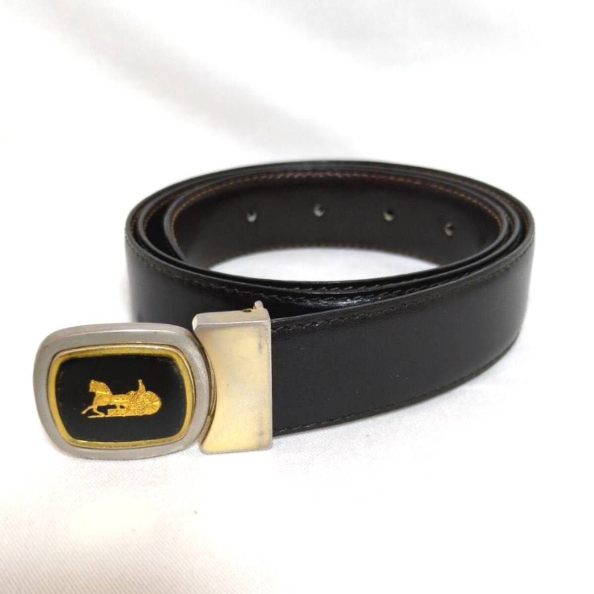 - セリーヌ CELINE 黒×シルバー系×ゴールド系 レザー 馬車 ロゴ ベルト