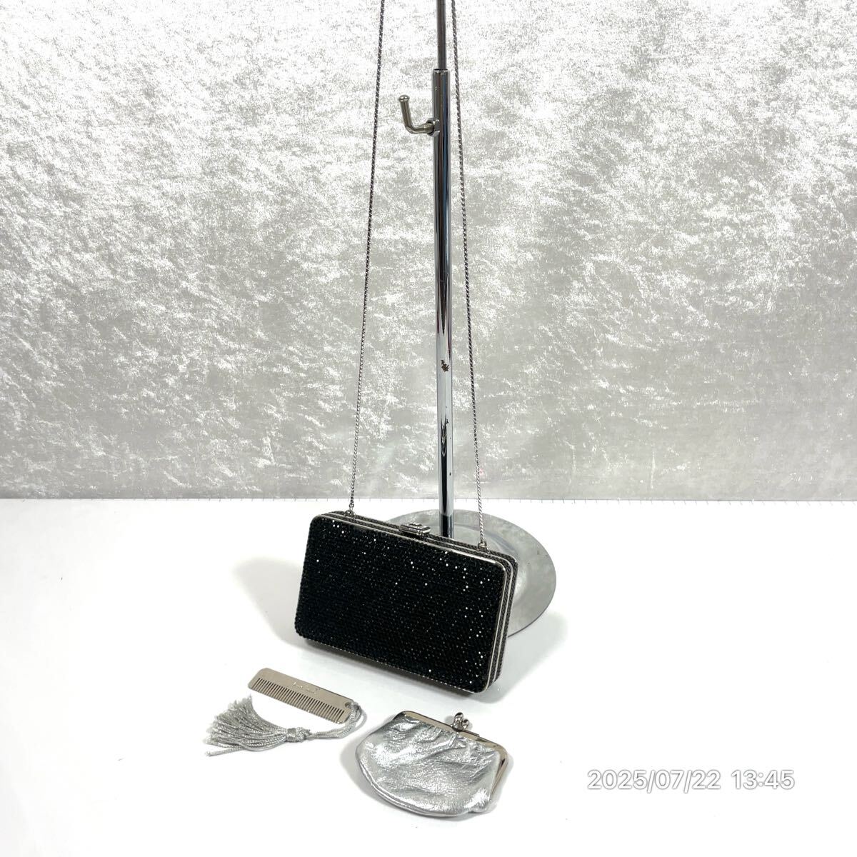 - 高級 JUDITH LEIBER ジュディスリーバー スワロフスキー ブラック×シルバーカラー 2way ハンドバッグ ショルダーバッグ かばん 鞄