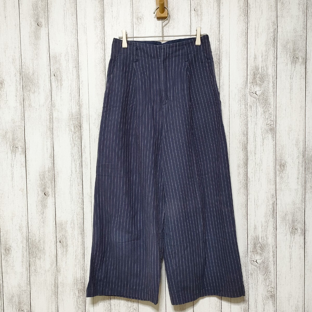 - UNIQLO ユニクロ (M) リネンコットン ワイドパンツ ストライプ