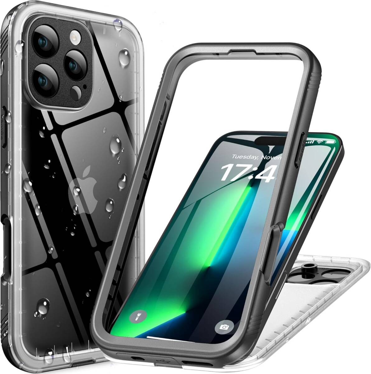 > iPhone 16 Pro max 用 防水ケース - 完全防水 透明 IP68 防塵 3M 耐衝撃 米軍MIL ストラップ付き 360度 両面 全面 海 お風呂