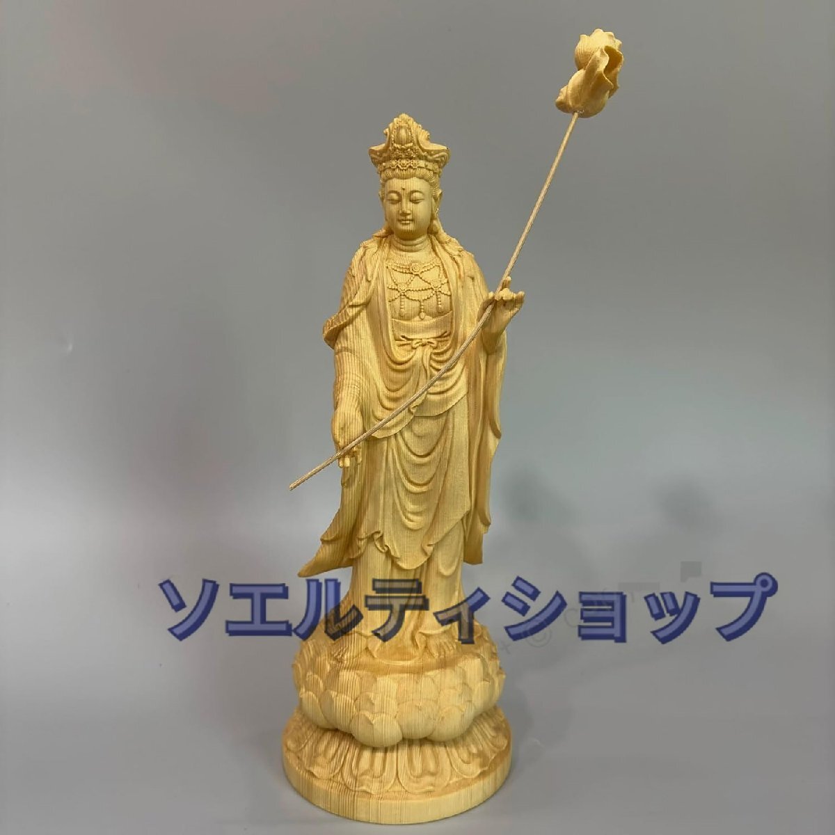> 木彫りの仏像 勢至菩薩(午年生まれ) 桧木製高級木彫り (高さ30cm×巾10cm)【風水 開運】◆厄除け十二支守り本尊・守護仏