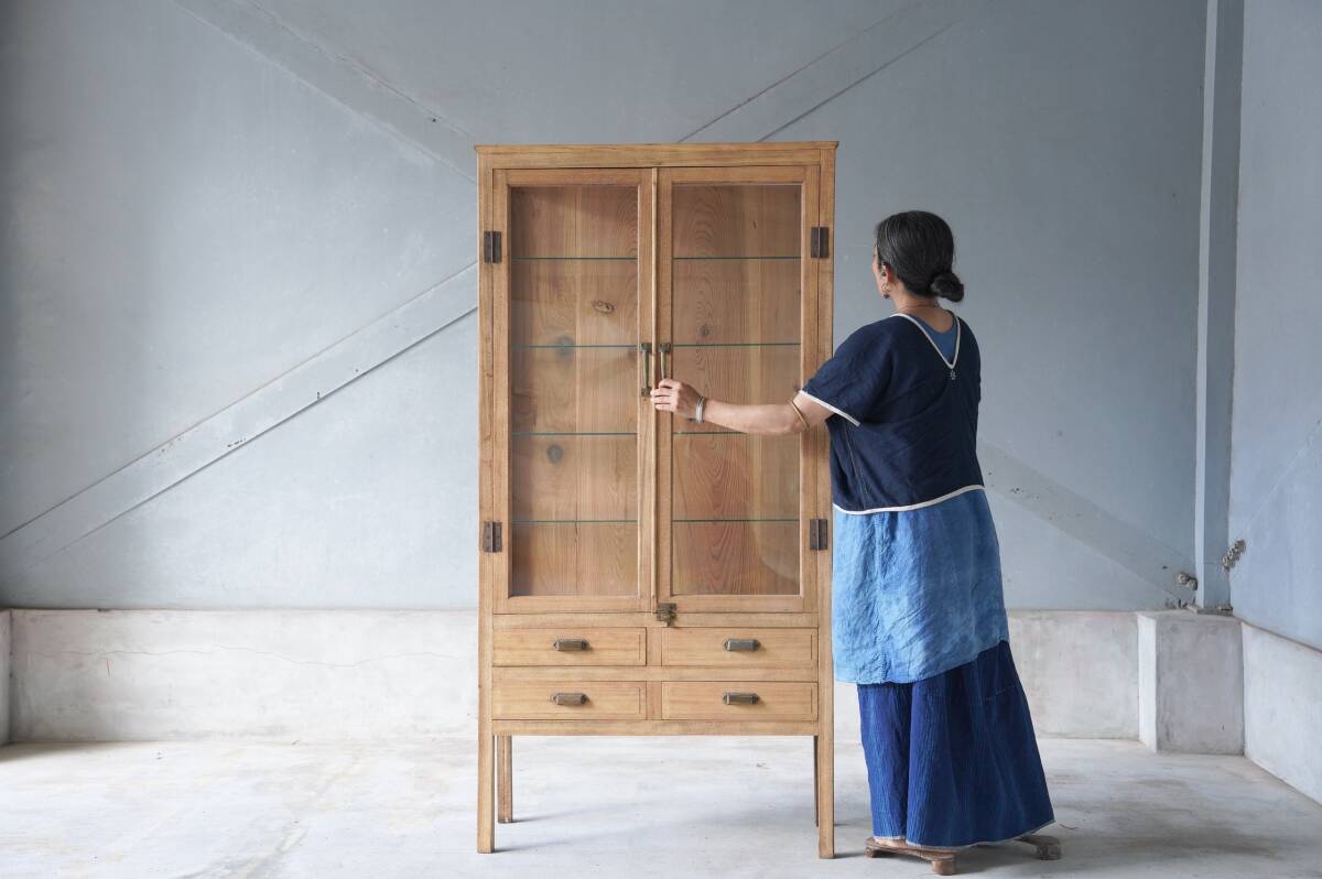 - ガラスケビント ケビント 店舗 ギャラリー カフェ ガラスショーケース 飾り棚 食器棚 展示台 陳列棚 キャビネット 古家具 ヴィンテージ ②
