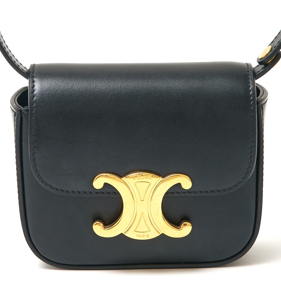 - CELINE セリーヌ ミニ クロード 10I513DPV.38NO コンパクト ショルダーバッグ カーフスキン ブラック×ゴールド金具 レディース