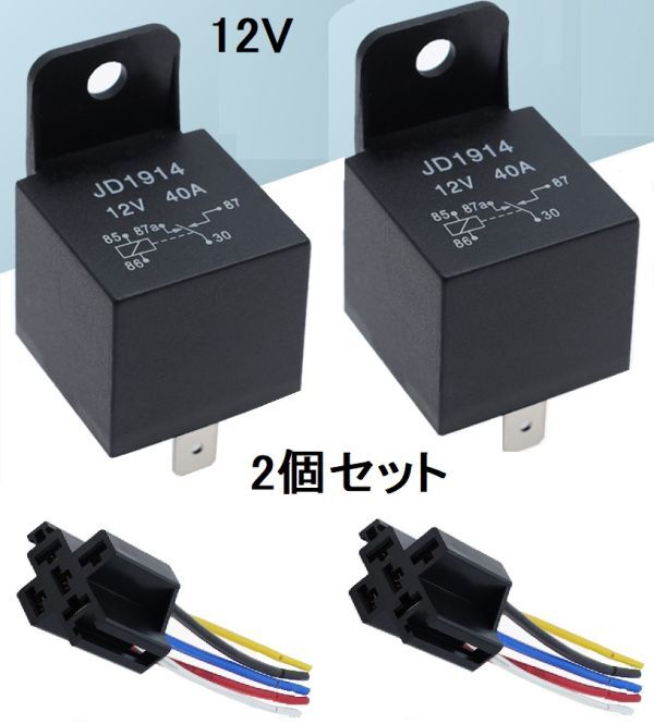 - 2個セット リレー 5極 DC12V 40A カプラー 5線 配線付き