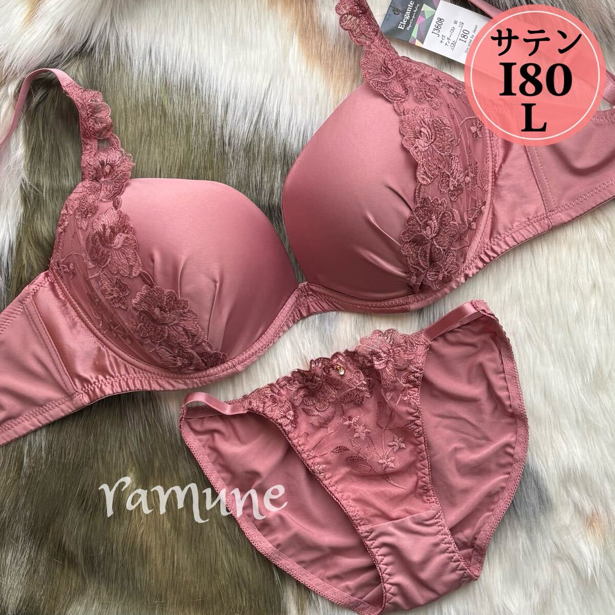 > ラスト【I80/L サテン 上下セット】新品 ブラジャーショーツ 下厚パッド内蔵 レース パンティ 男性用ブラジャー 女装 Iカップ 大きいサイズ