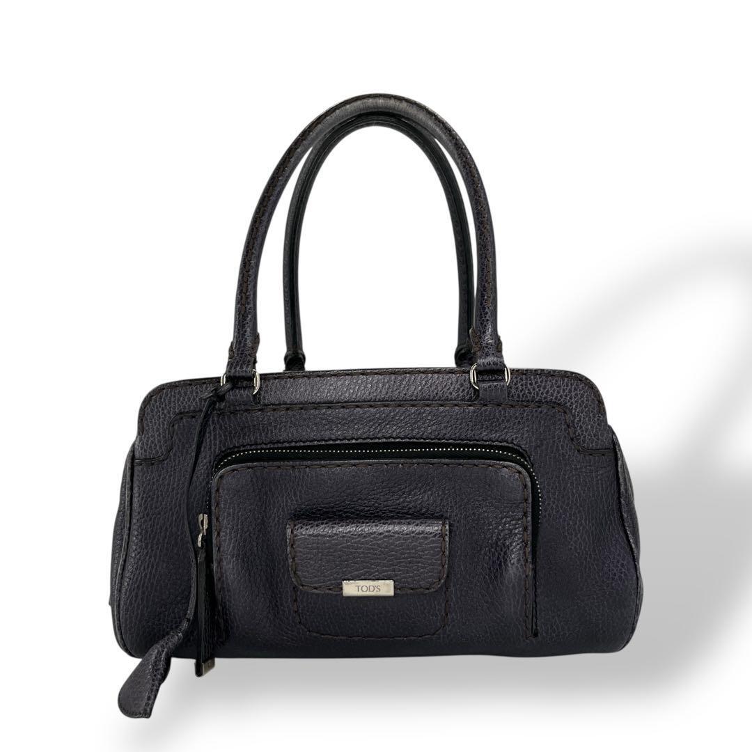 - TOD'S トッズ ハンドバッグ ミニボストン クロシェット ロゴプレート カデナ レザー ネイビー トートバッグ ロゴ刻印