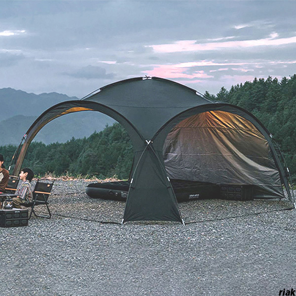 > 【4mx4m大空間UV防水シェードテント】 防水タープテント ビーチシェード UVカット 軽量 アウトドア キャンプ 黒いドーム