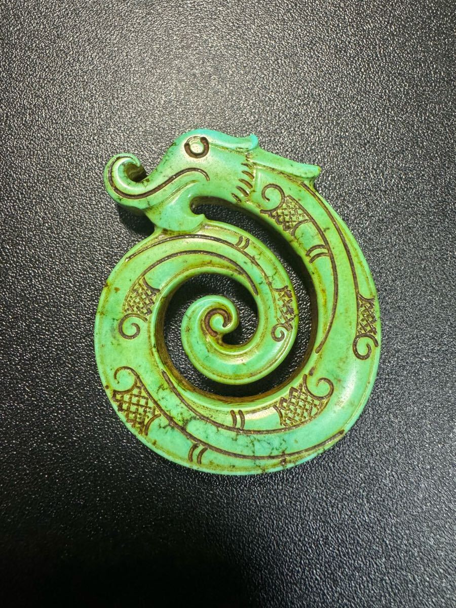 - ターコイズ 松石 龍ドラゴン 中国美術 時代物 漢~唐代 細密彫 開運風水 飛龍天