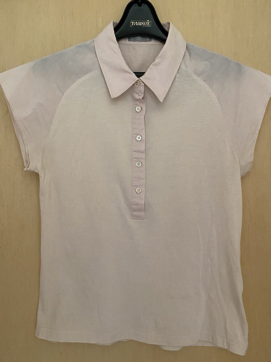- マーガレット ハウエル 半袖 フレンチスリーブ 襟付き カットソー 落ち着いたピンク 綿100%