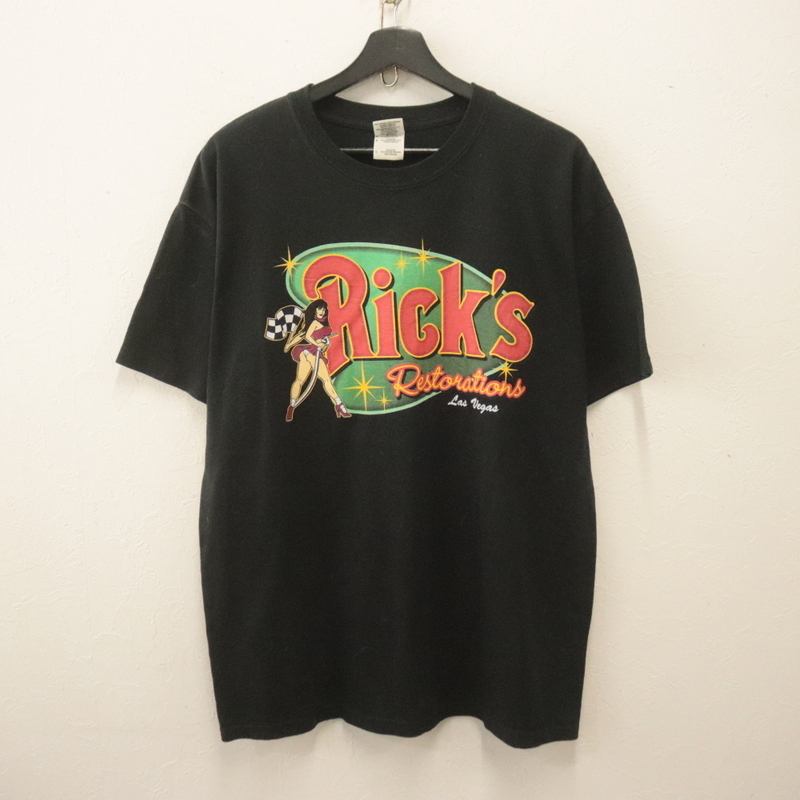 > S763 2000年代製 GILDAN ギルダン 半袖プリントTシャツ■00s 表記Lサイズ ブラック 黒 Rick‘sLasvegas アメカジ ストリート 古着 激安