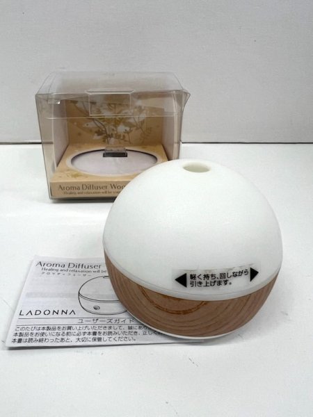 > 【丸-1425】◆LADONNA[ラドンナ]アロマディフューザー ウッディボール ナノ◆乾電池式/木目調◆※パッケージ入り ユーズド・中古◆KT