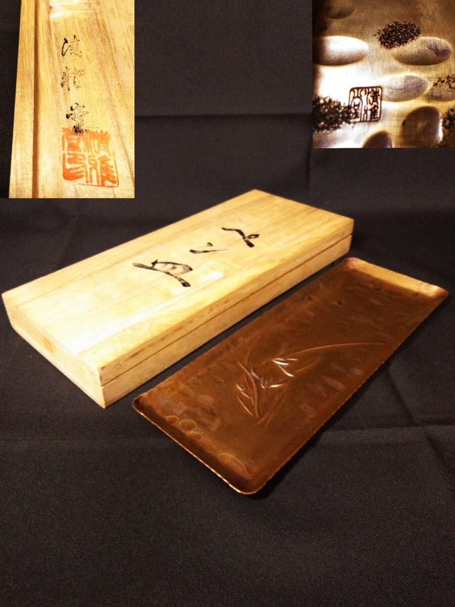 - 鎌倉清雅堂 鎚起銅器 ペン皿 文具 文房具 筆皿 銅器 在銘 トレー (検索) 銅器 金属 工芸 美術 アンティーク レトロ 古玩 銅製 書道 文