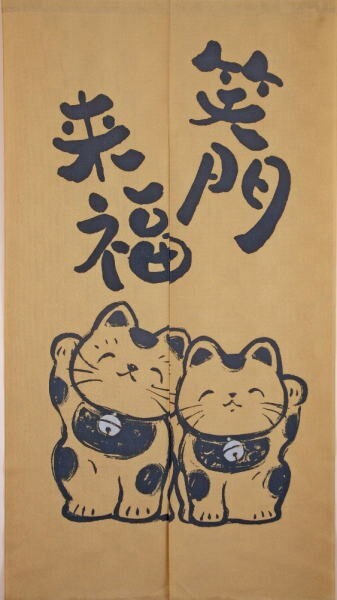 - 和風のれんロング85センチ×150センチ 笑門来福「招き猫柄」(10175-2294)