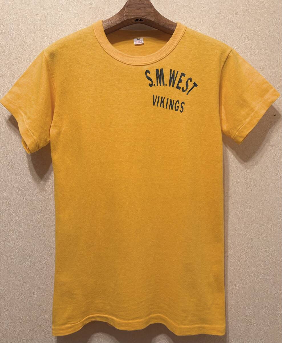 > USA製60sビンテージRUSSELL SOUTHEAN-S.M.WEST VIKINGS黒TシャツM袖裾シングル黄コットン丸胴US製オリジナル米製60年代1960sラッセルサザン