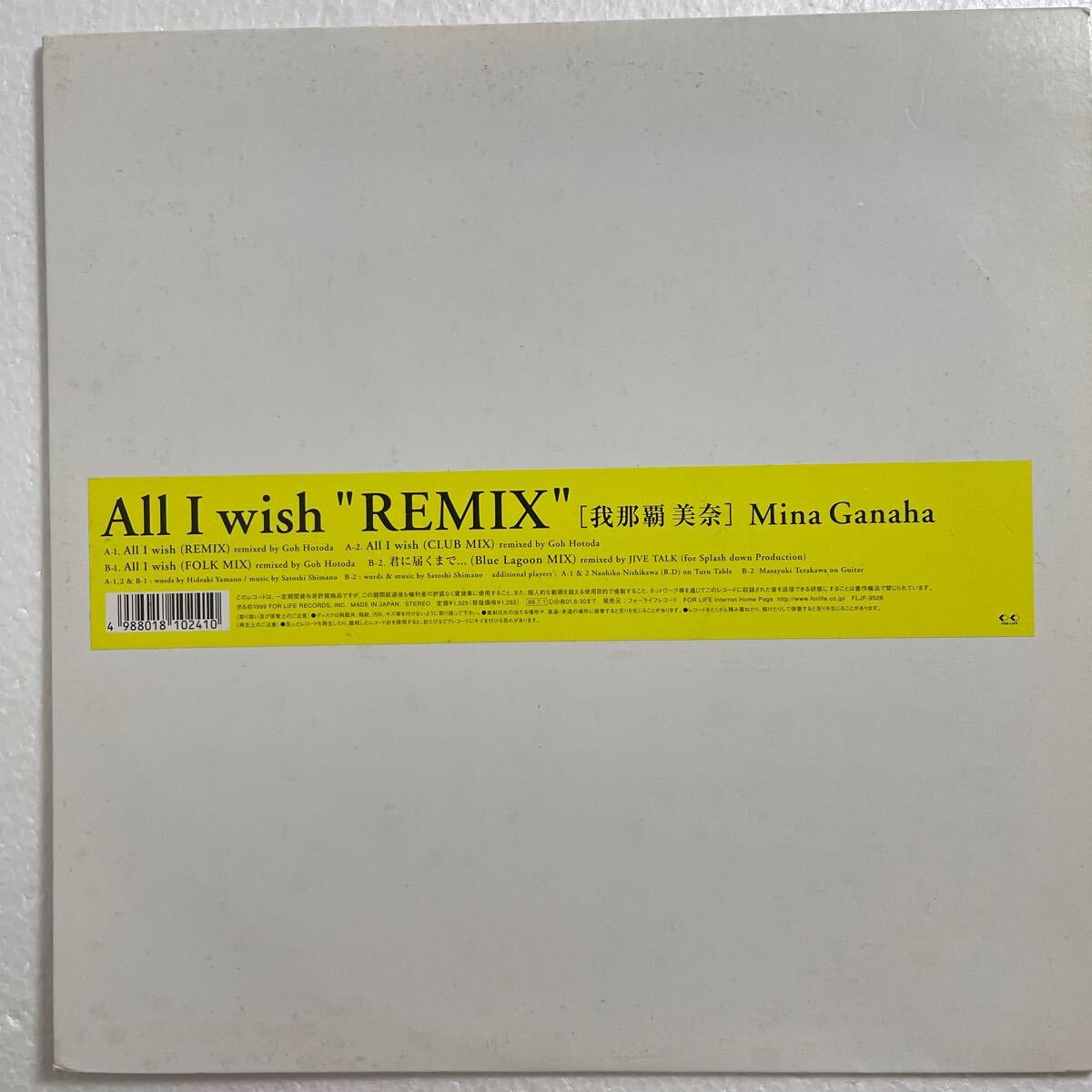 - 我那覇 美奈 LPレコード All I wish REMIX