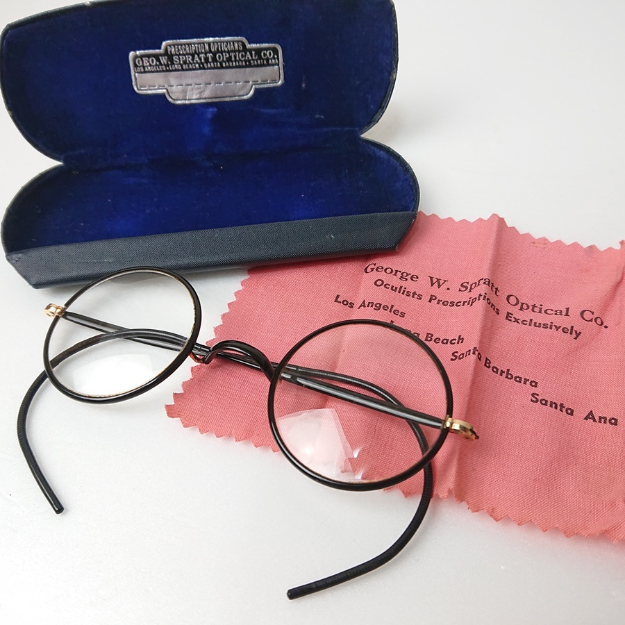 - 1920's~30's vintage Bausch&Lomb B&L ボシュロム ラウンド セル巻き 一山式 ブラック 眼鏡 メガネ