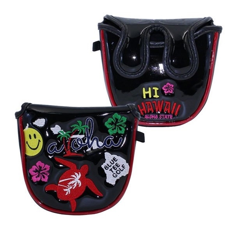 > □4【MALET-BK】ブルーティーゴルフ【ハイハワイ Hi Hawaii エナメル】マレット型パターカバー HC-030 BLUE TEE GOLF 送料無料