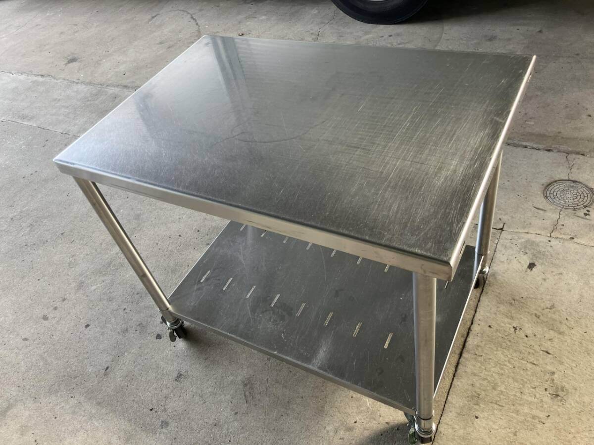 - 作業台(キャスター付き)幅920×奥620×高800 ステンレス台 飲食店 業務用 作業機器 コンロ台 調理台 厨房機器 店舗用品 106007