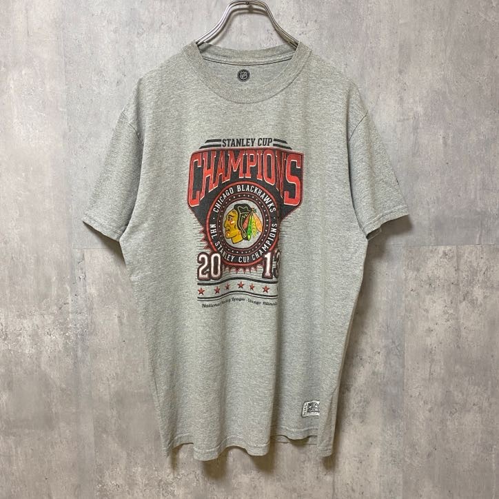 > 古着 used NHL シカゴブラックホークス アイスホッケー 半袖オフィシャルプリントTシャツ スポーツ グレー Lサイズ