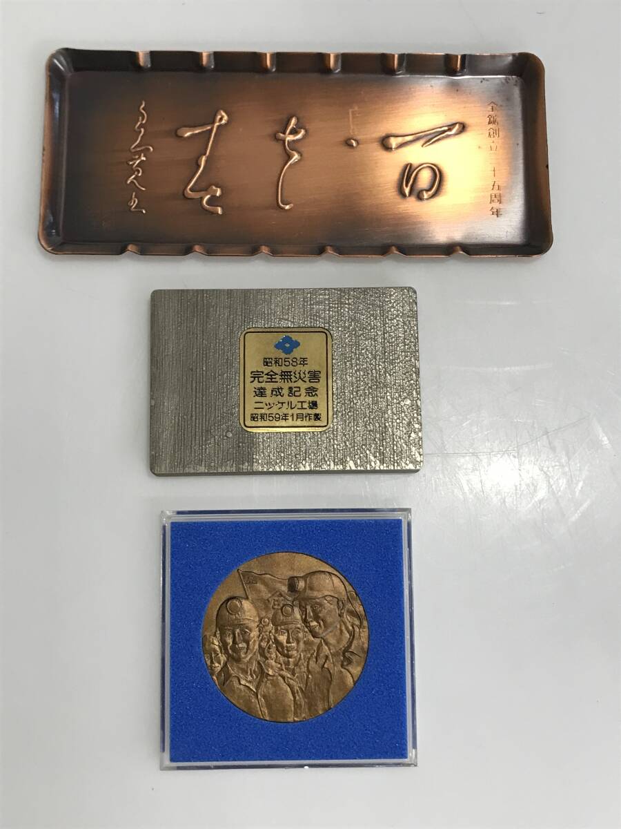 - HG8445 住友鉱山 記念品 3種 全日本金属鉱山労働組合連合会 記念 メダル & 全鉱創立 英純堂 トレイ&無災害達成記念 プレート