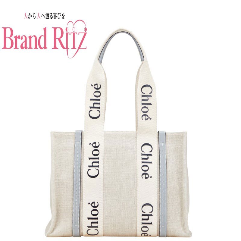 > 中古 クロエ ウッディ ミディアム トートバッグ ショルダーバッグ Bランク ベージュ ブルー 【送料無料】【三田店】