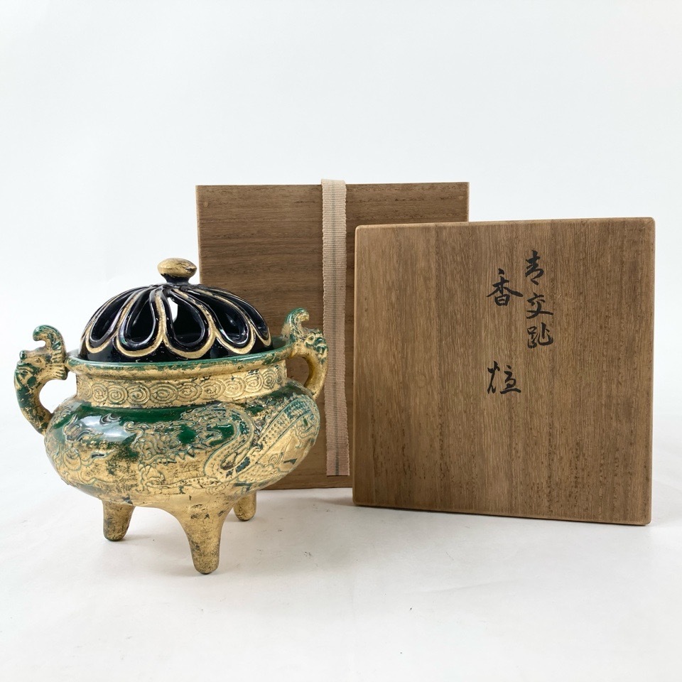 - 十四代 永楽善五郎 得全 作 青交趾竜文香炉 共箱 茶道具 共箱 茶道具 4010956