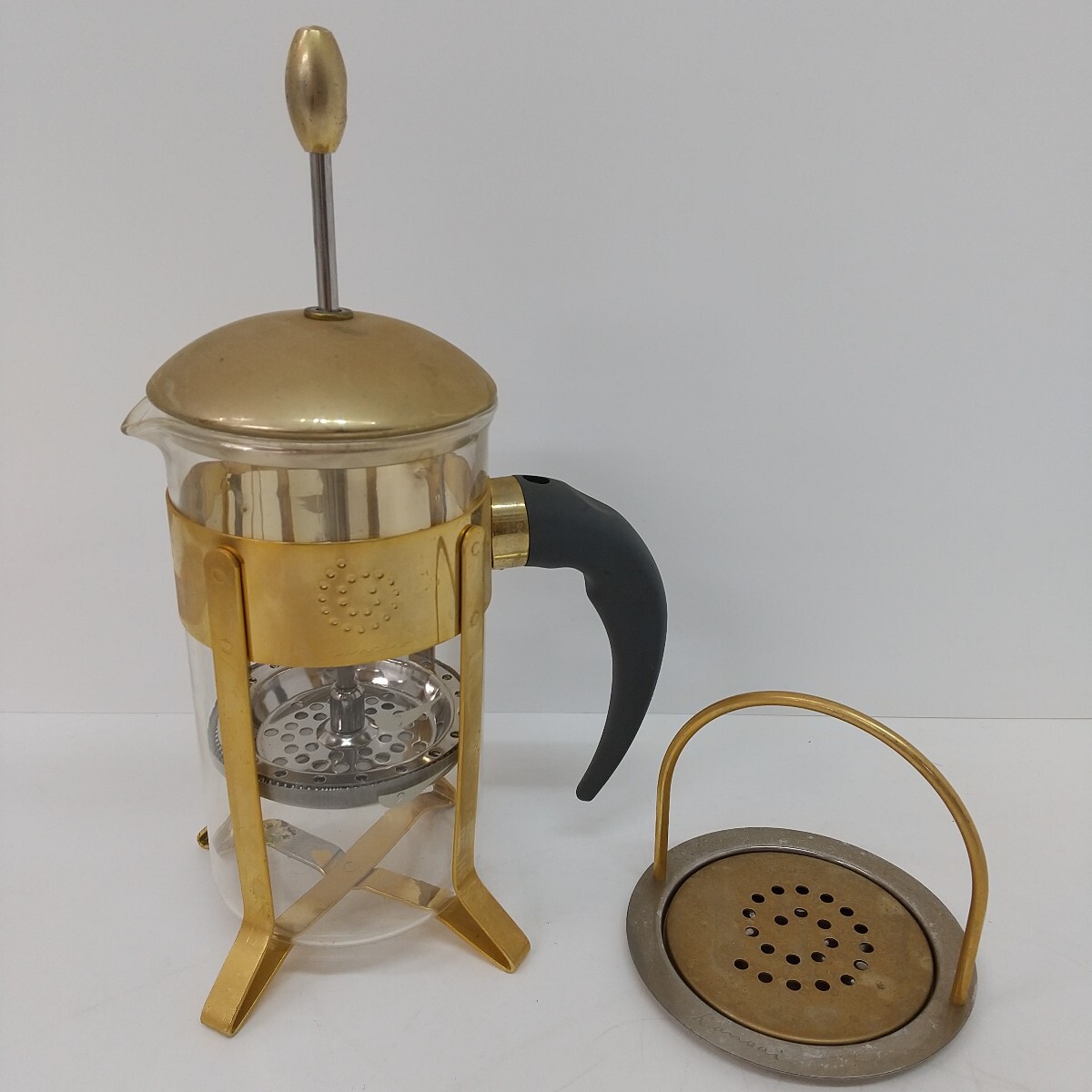 - 319 中古 ティーサーバー コーヒープレス フレンチプレスティー レモン置き ゴールド レトロ