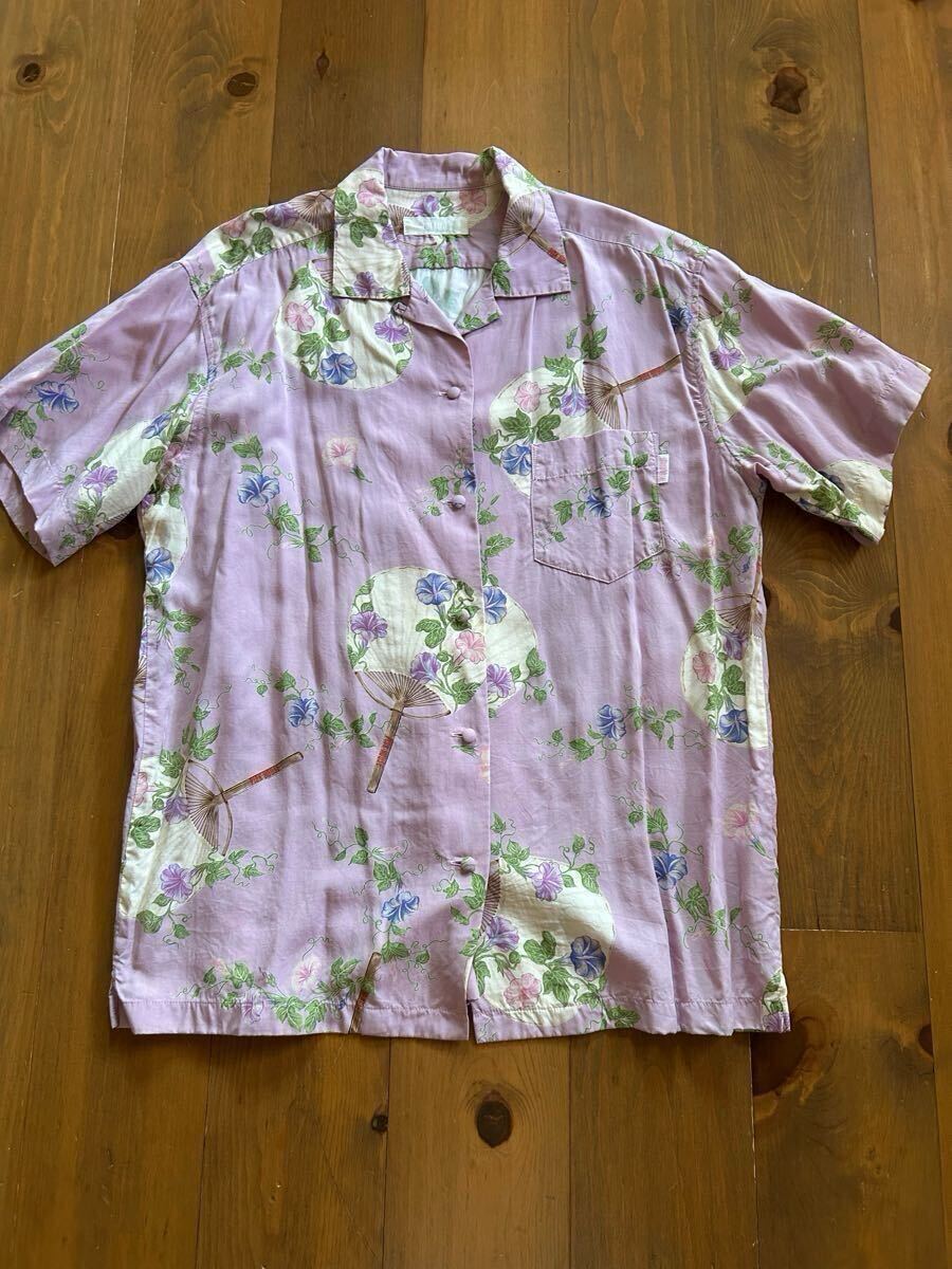 - ピンクハウス うちわと朝顔柄 アロハシャツ