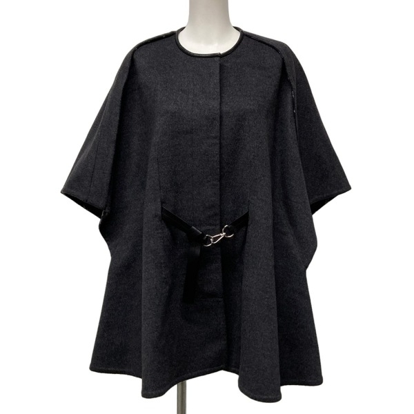 - ルイヴィトン LOUIS VUITTON ポンチョ サイズ38 M FDC010QWE - ウール、シルク ダークグレー レディース 裏地モノグラム柄/秋/冬