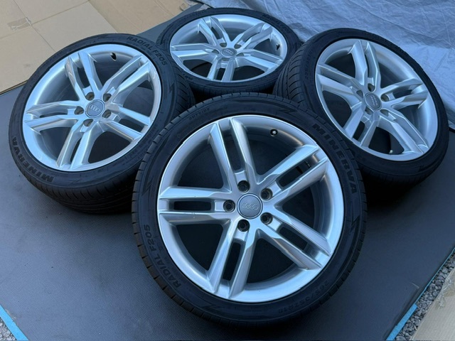 - ホイール付タイヤ4本セット(アウディ純正 A4 S-Line A5 純正 18インチ 8J+47 PCD1125 ツインスポーク 265/35/18 235/40/18 ほぼ新品タイヤ