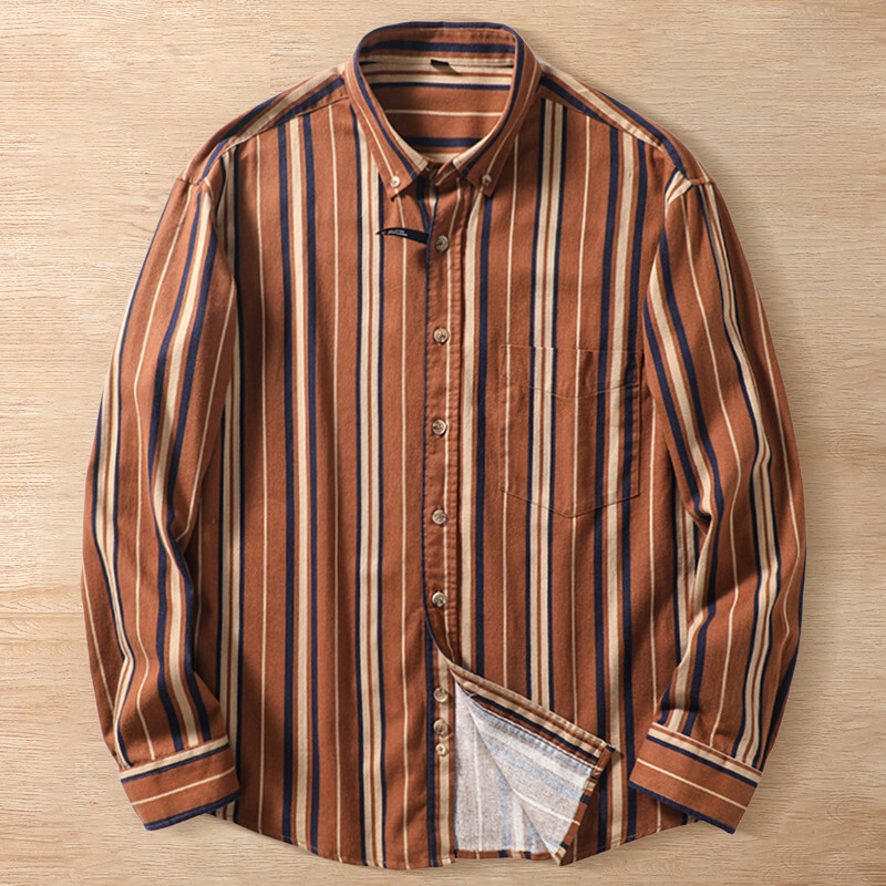 - A5905-4XL ブラウン 茶 新品 DCKMANY ストライプ 綿100% ウォッシュ 長袖シャツ 形態安定 春秋 コットン メンズ ボダンダウン ワイシャツ